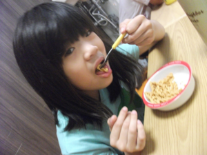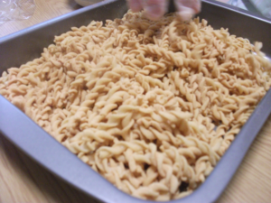 今回の手作りおやつは「マカロニきな粉」を作りました!おいしかったですよ(^^♪