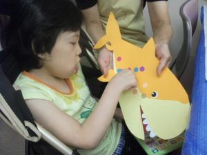 夏に向けた壁面用の作品を作りました!シールを貼ったり、スタンプで色を付けたりして楽しんでいます(*^-^*)