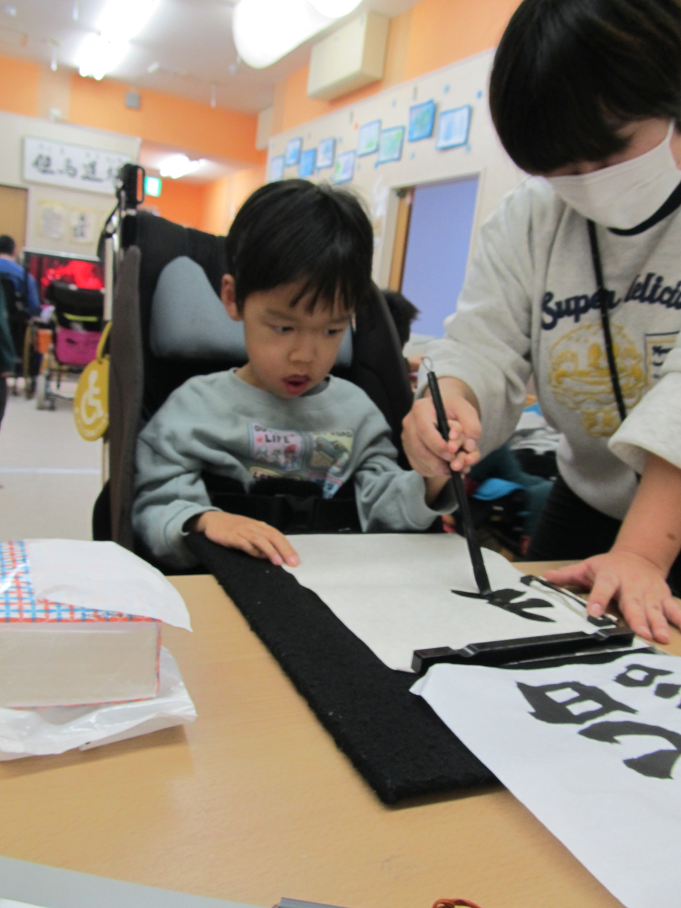 2026年希望の星最初の活動は、書初めでした☆みんな難しい漢字を、お手本を見ながら上手に書くことができました(^_-)-☆