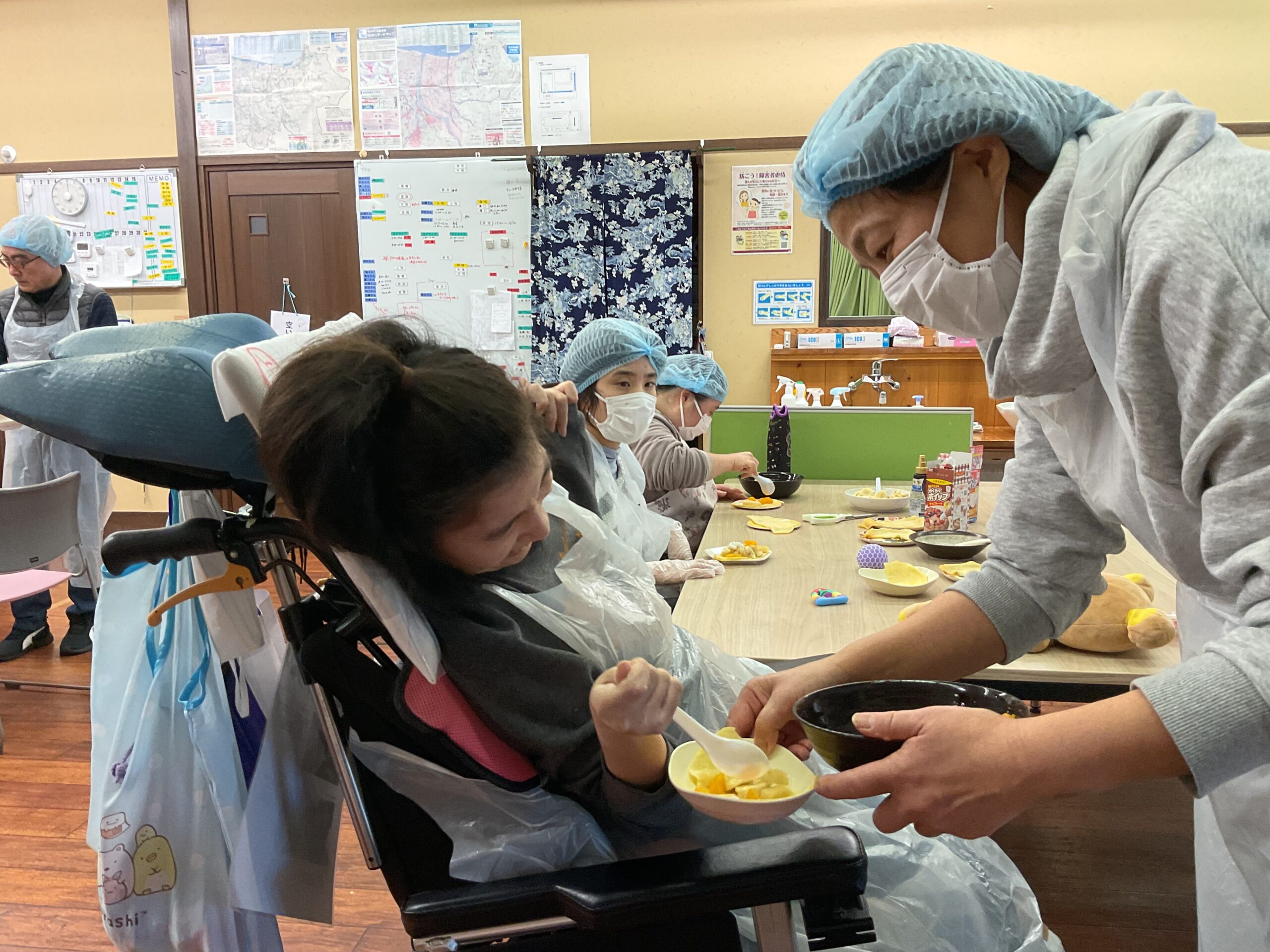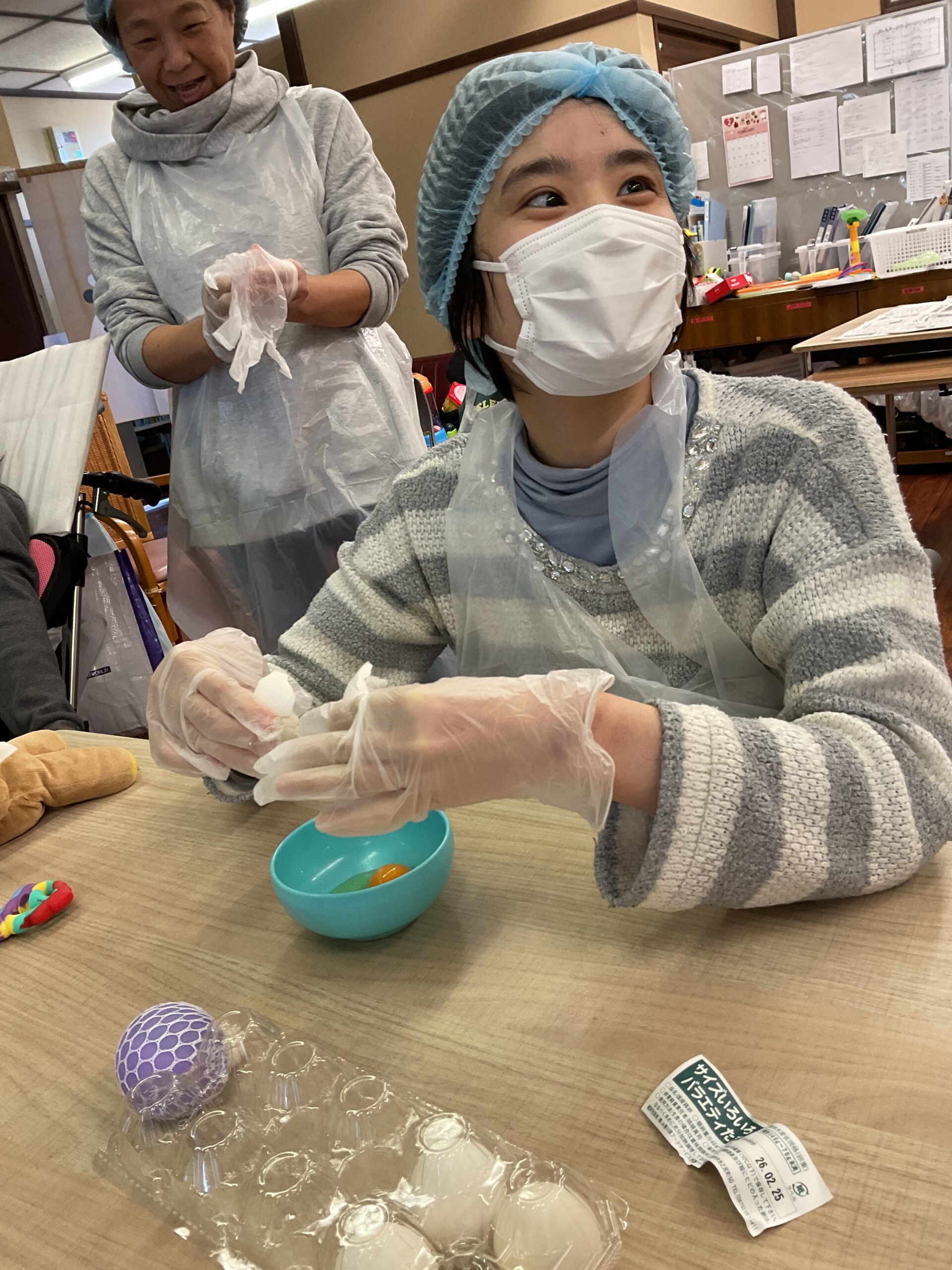 楽しみでマイエプロンやマイ三角巾を持参されたご利用者様もおられました😊