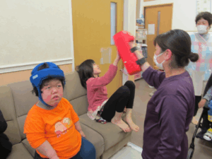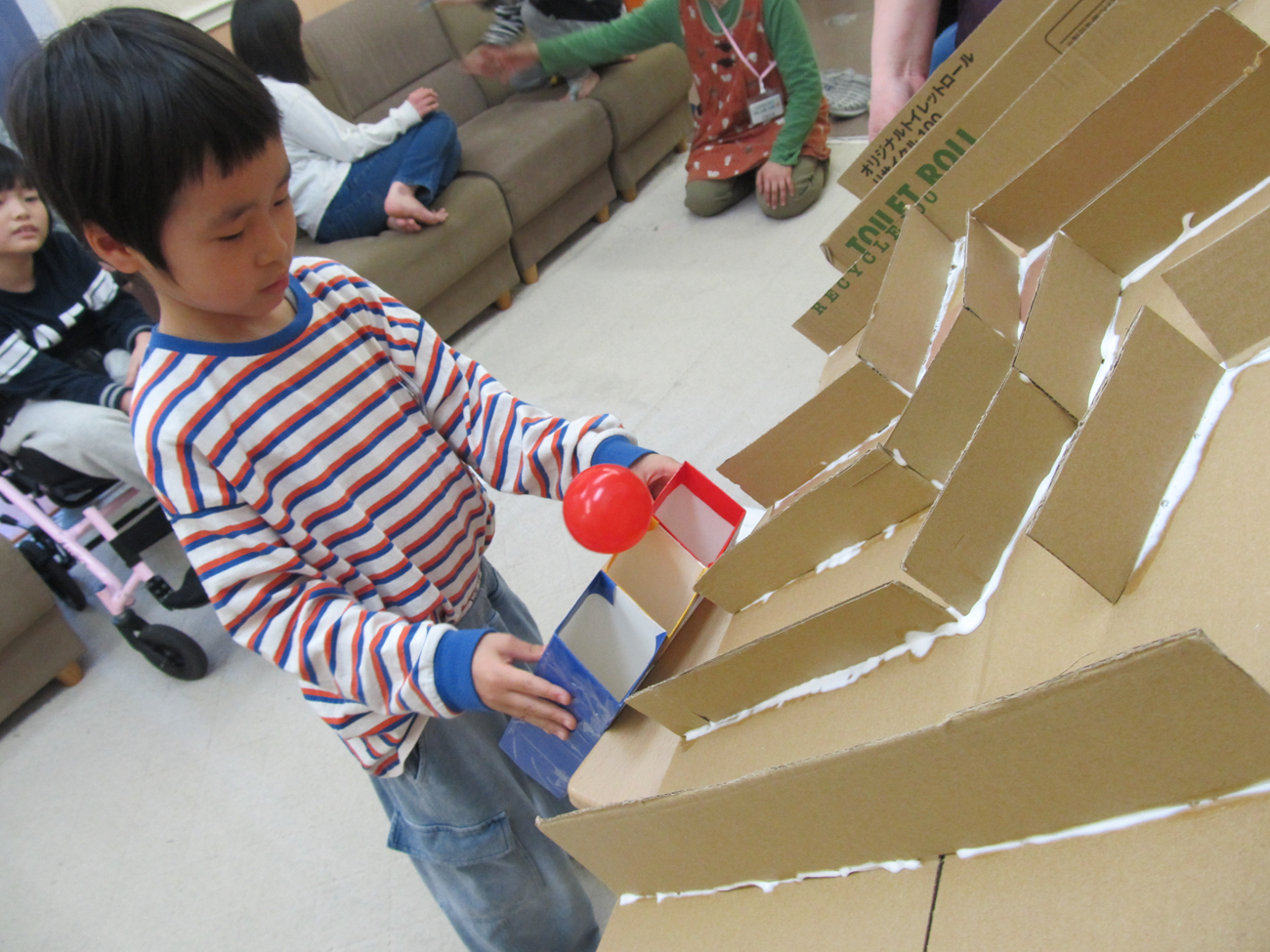 ボールがどこから落ちてくるか、考えながらキャッチしました!集中する子どもたち、良い表情でしたよ(^_-)-☆