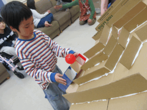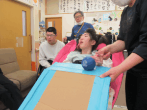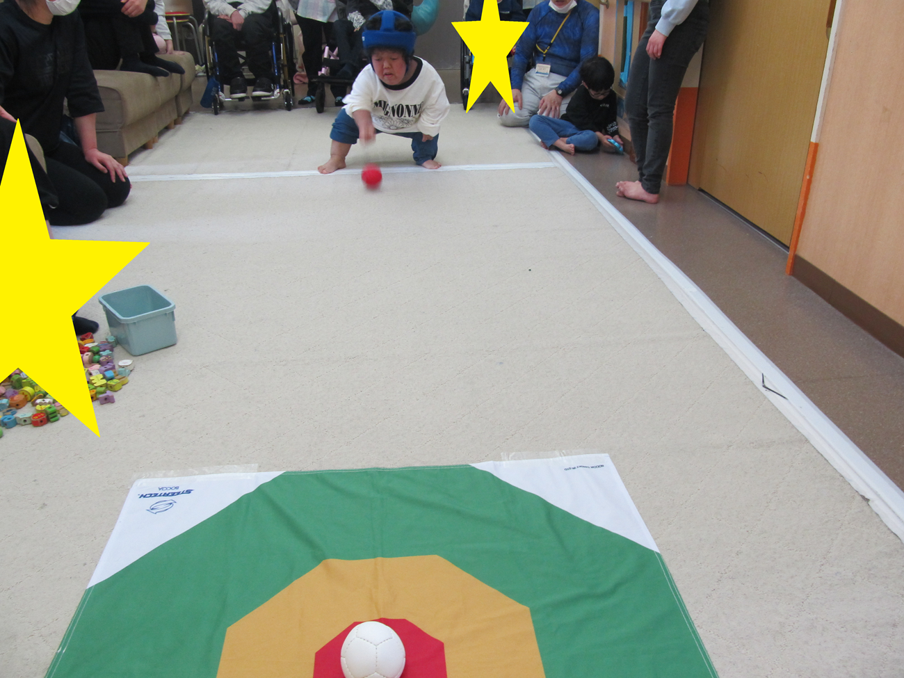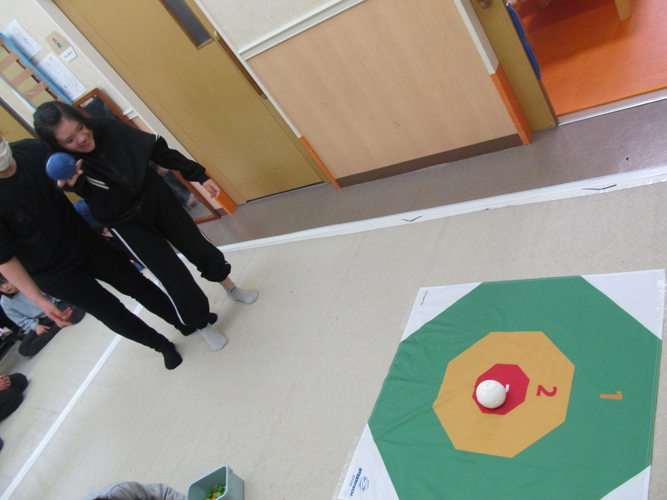 赤チーム、青チームにわかれて点数を競い合いました!みんなまっすぐ投球しており、とても上手でした!両チーム高得点でした(*^_^*)